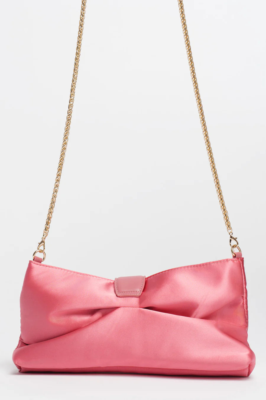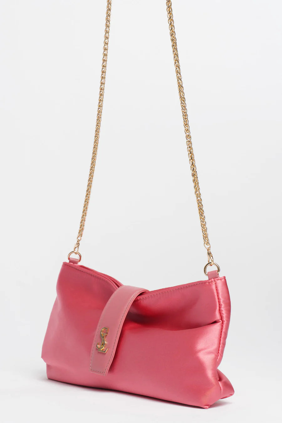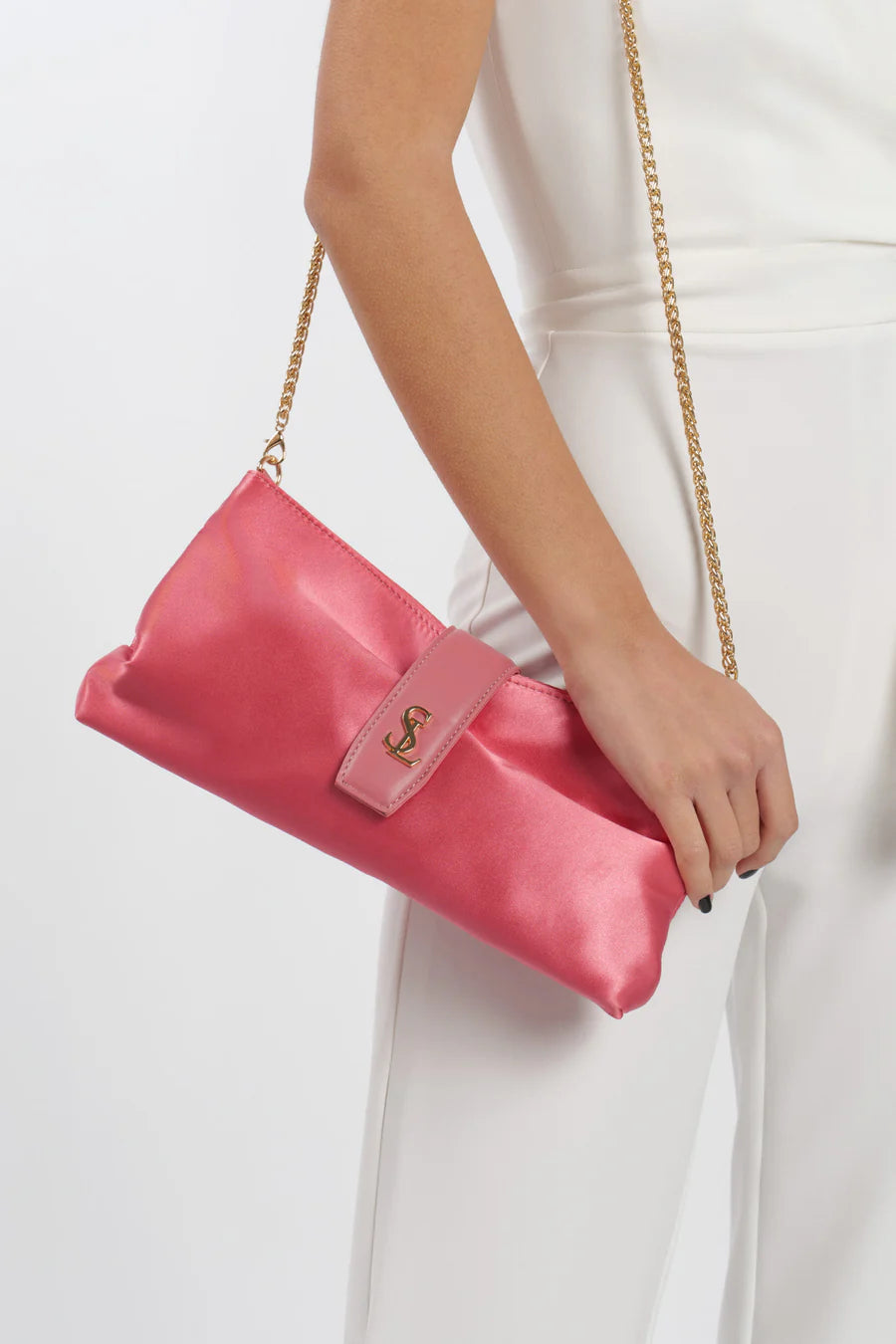 Accompany your look with elegance and style with the ALMA clutch bag. Made of satin, soft and refined with a rectangular figure, it adds a touch of class to any outfit. Automatic closure and front logo. Perfect for special occasions such as ceremonies and events, to carry your essentials with elegance.