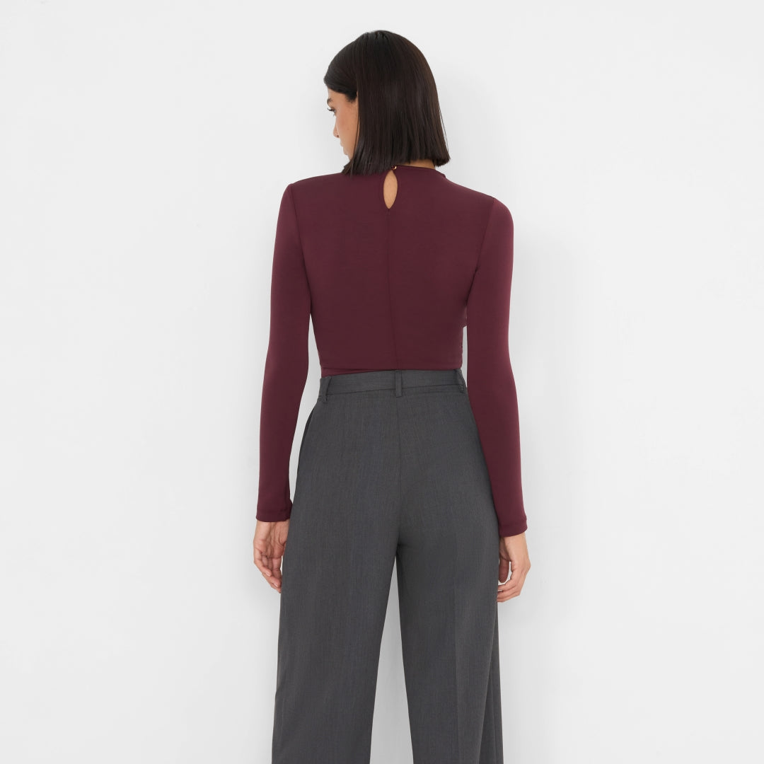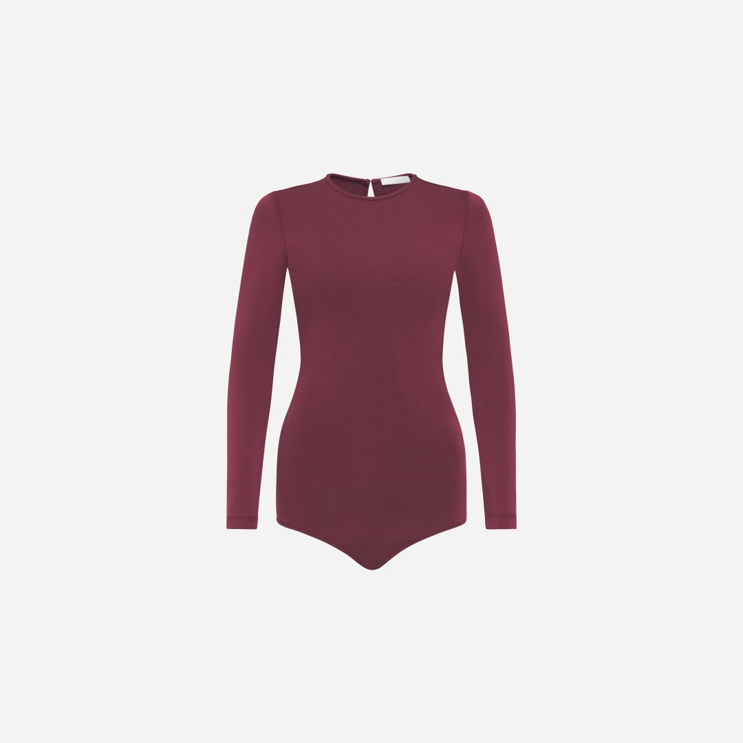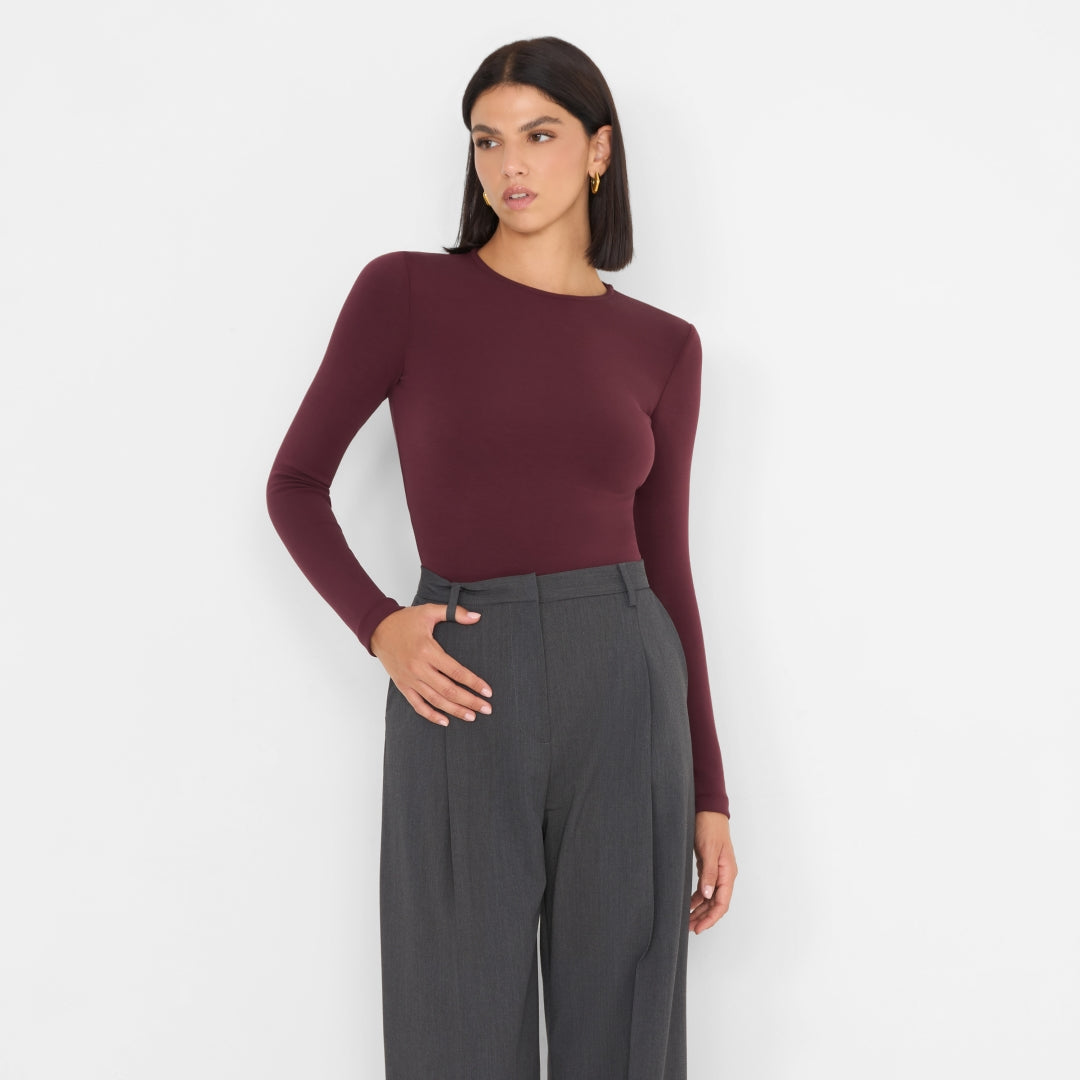 A versatile and essential body made from soft, stretchy fabric that offers comfort and a flattering fit. The long-sleeve design with a round neckline and small button closure at the back makes it perfect for layering under jackets, cardigans, or high-waisted pants for a sleek, casual look. Ideal for everyday wear.