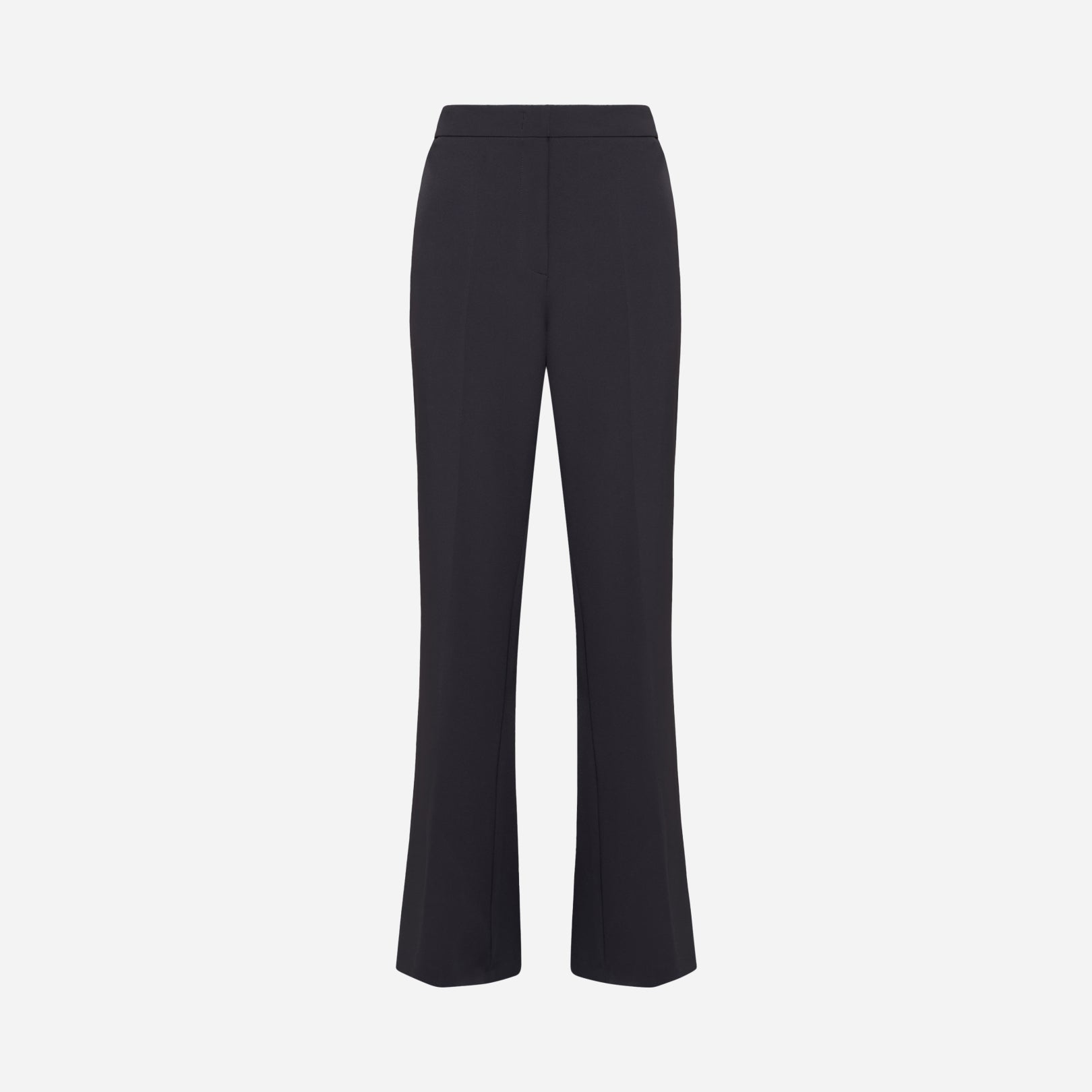 These Crepe Flare Pants feature a refined silhouette with a high waist and flared leg, crafted from a smooth crepe fabric that drapes beautifully. Designed for both comfort and sophistication, they are perfect for pairing with blazers or fitted tops for modern, elegant looks. Made in Italy for a premium finish.