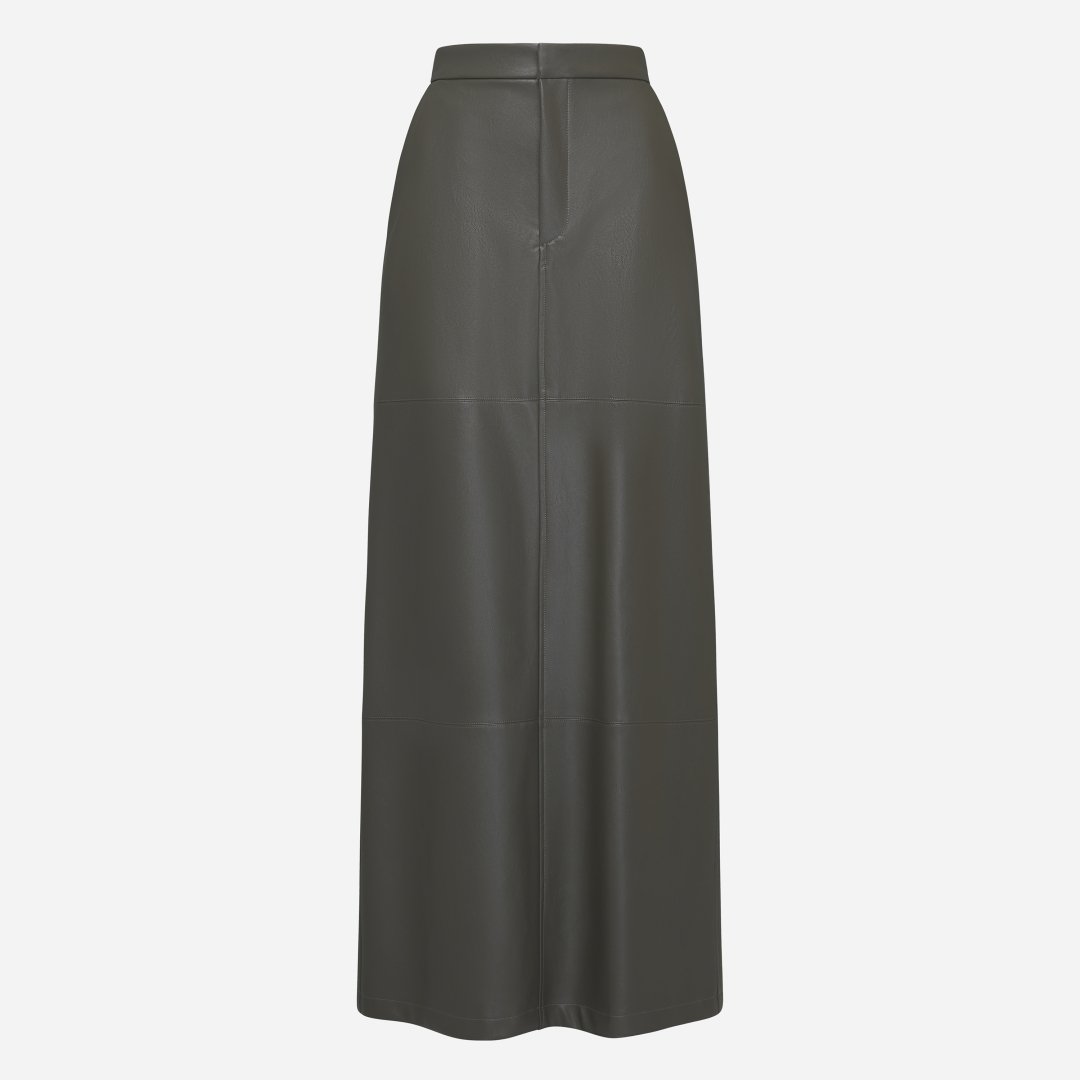 An elegant and sophisticated long skirt made from eco-leather, designed with a straight and clean line. The high waist with a tailored band enhances the figure, while the soft drape along the leg ensures comfort and fluid movement. It features discreet side pockets, a back slit for freedom of movement, and a front zipper closure. A versatile piece perfect for both day and night. Made in Italy.