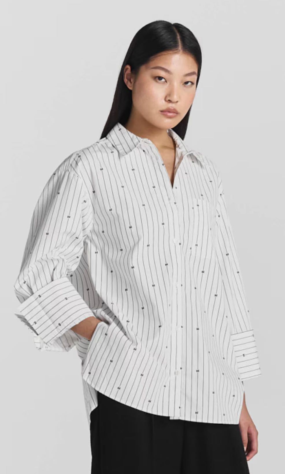 Discover the charm of the Fiona shirt, crafted from 100% organic cotton. The single front patch pocket and the wide cuff sleeves, with two buttons that let's you adjust the width, add a touch of laid-back sophistication to this sustainable wardrobe essential.