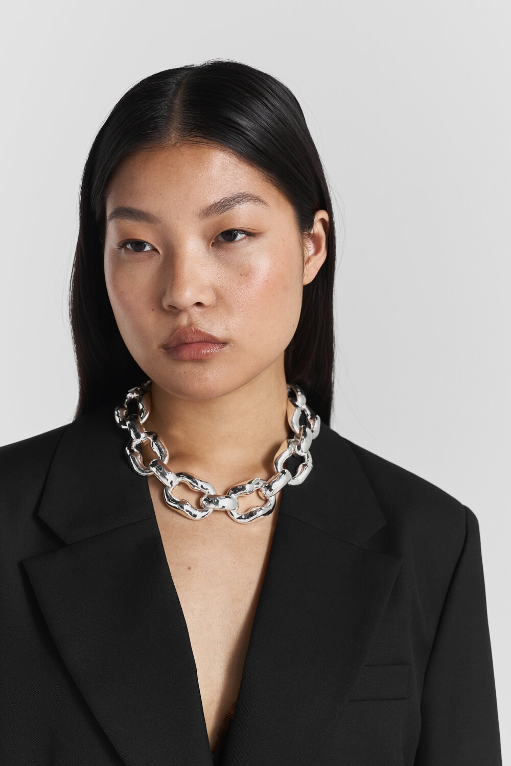Make a statement with our Inez Necklace. This stunning accessory is silver plated and features a bold and chic chunky design.