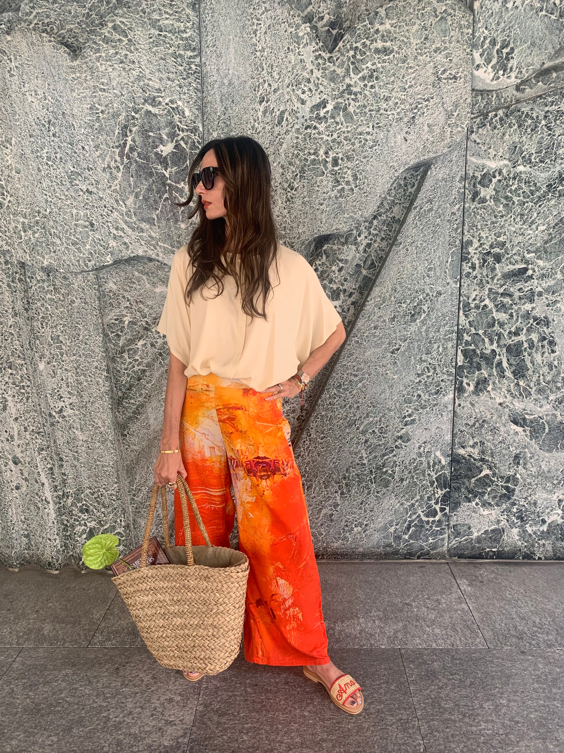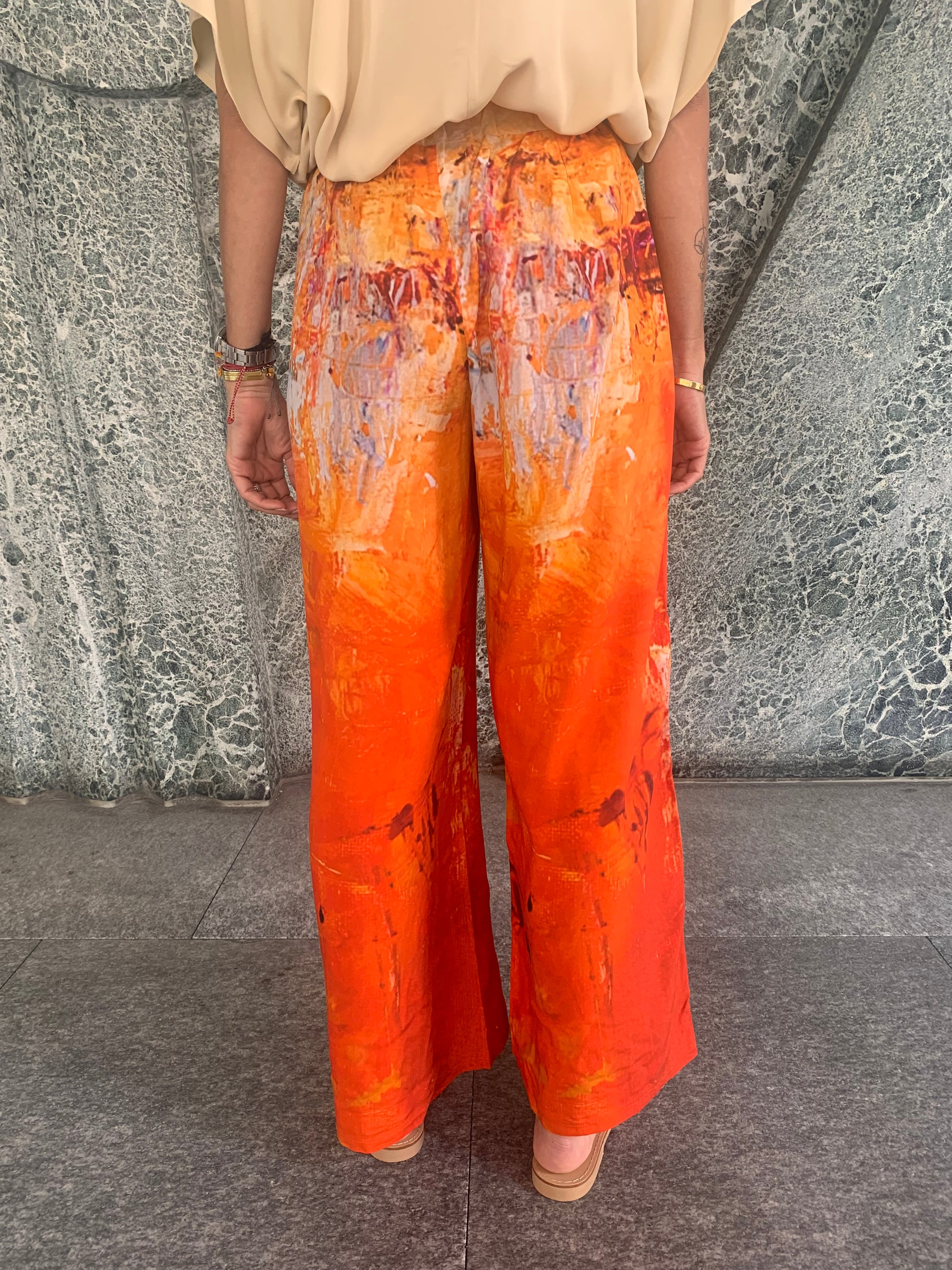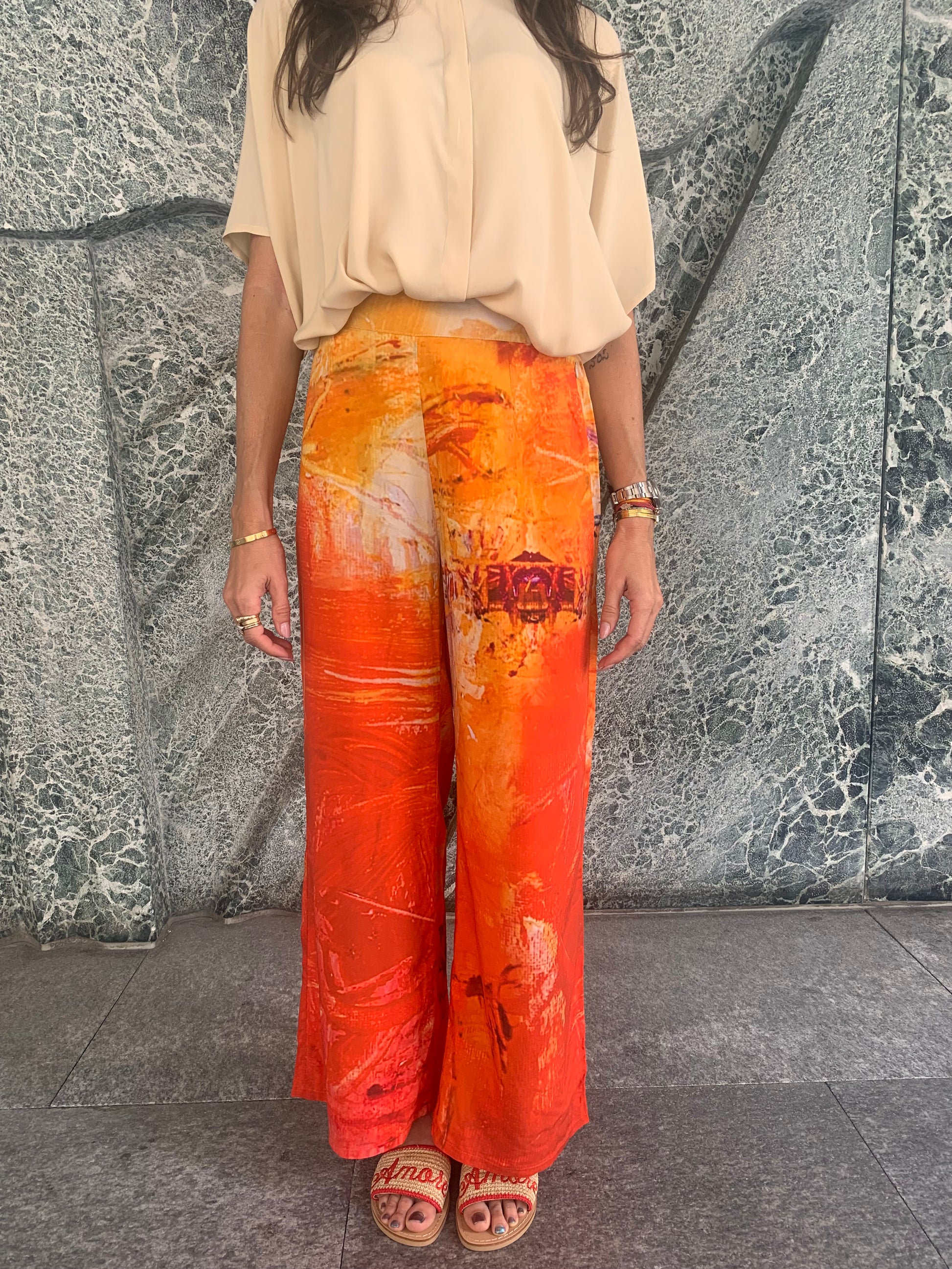 Palazzo Pants in viscose. Fluid and light. This is a special Capsule Collection born from the Painting "Expect the Extraordinary" of the Swiss Artist Ilaria Ratti.